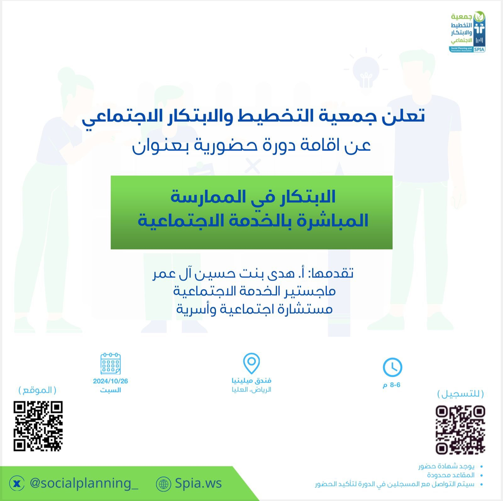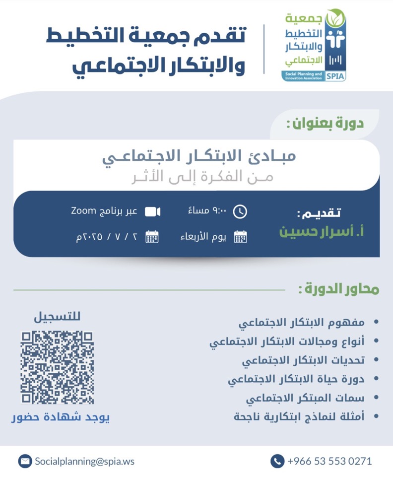 تقيم جمعية التخطيط والابتكار الاجتماعي دورة بعنوان :