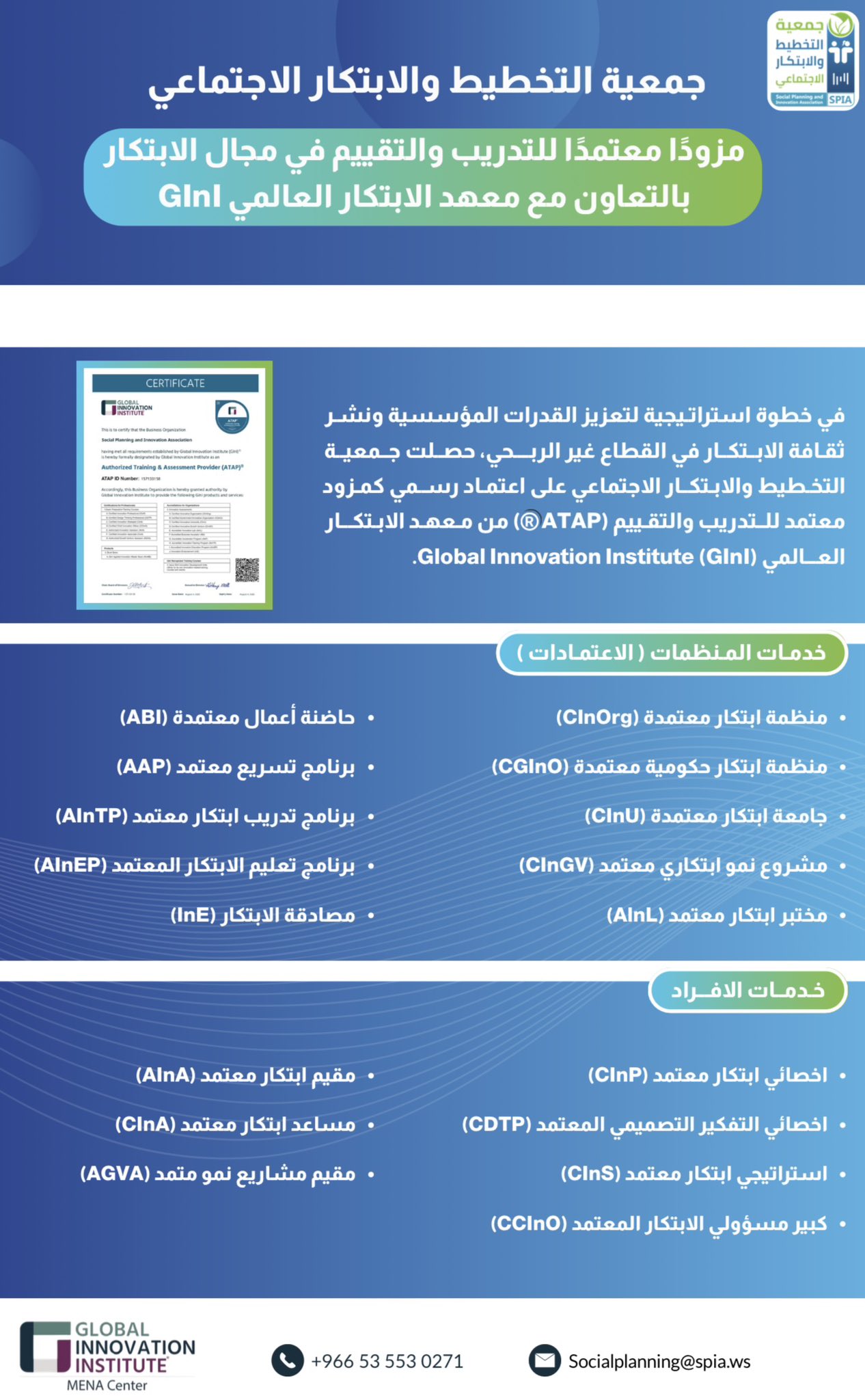 بخطوه تعزز حضورنا في مجال الابتكار حصلت الجمعية على اعتماد مزود للتدريب والتقييم (ATAP®) من م... قراة المزيد