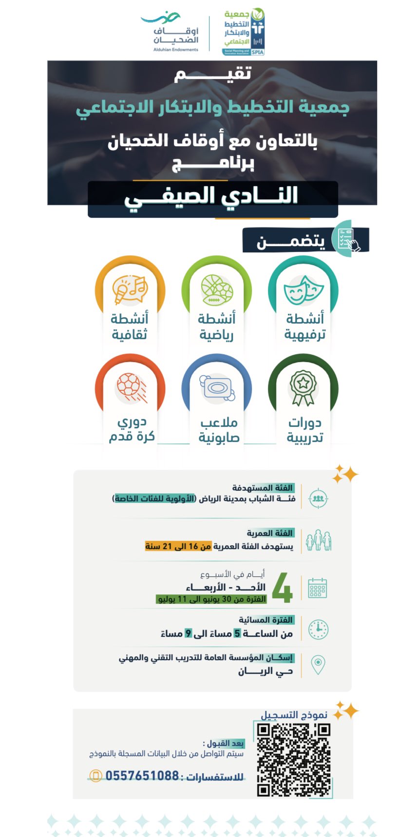 تقيم جمعية التخطيط والابتكار الاجتماعية بالتعاون مع #أوقاف_الضحيان برنامج النادي الصيفي،
